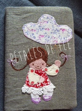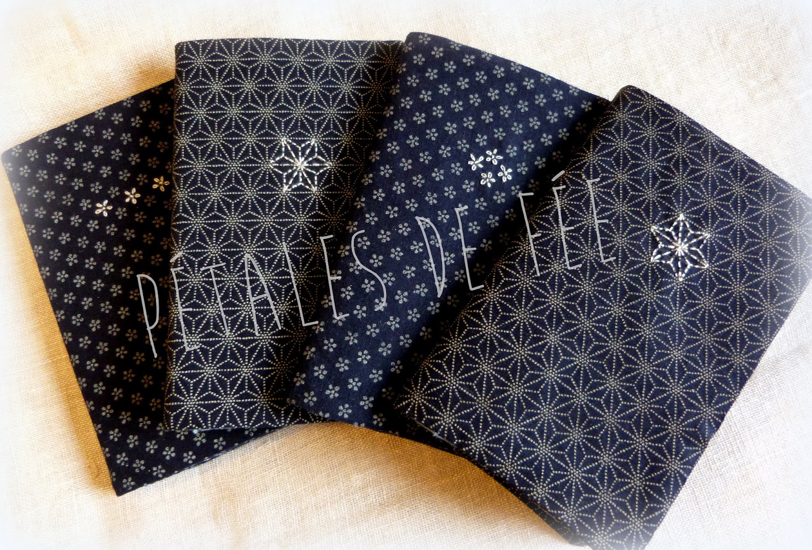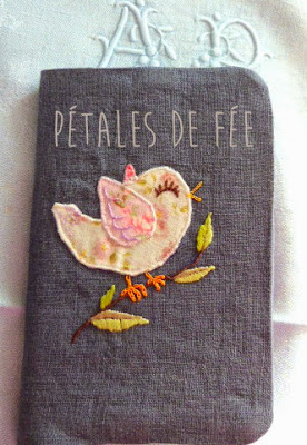 En lin ils sont cousus et brodés à la main et doublés. Répertoire 96 pages à petits carreaux (marque Clairefontaine) dimensions 14 x 9 cm