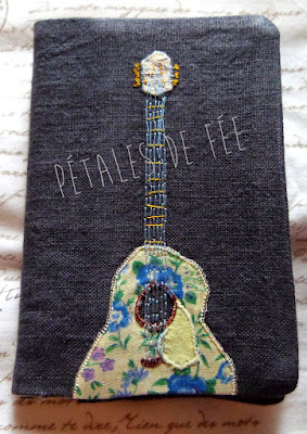 Lin gris antique, doublé, guitare brodée à la main