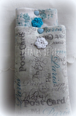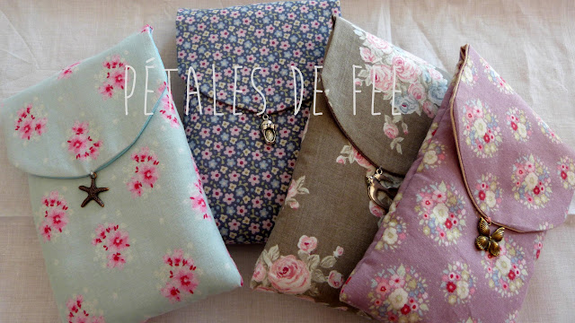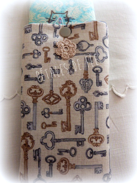 Toutes les housses sont en coton ou en lin, doublées et ouatinées et se ferment simplement par un rabat agrémenté d'un joli petit charm que vous pouvez choisir. Vous pouvez indiquer la taille de votre téléphone afin que je m'assure que la housse convienne parfaitement.
